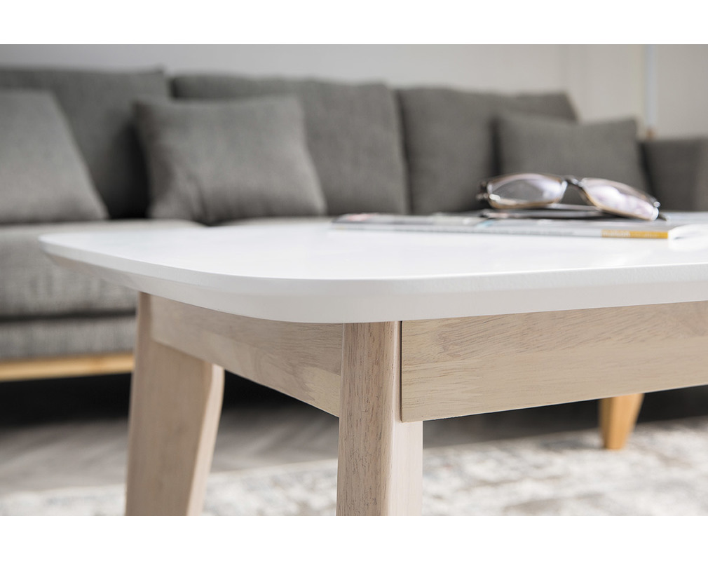 Table Basse Scandinave Blanche Avec Pieds Bois Leena Miliboo