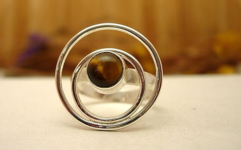 Bijoux Argent Oeil Pierre Oeil De Tigre Sur Bague Fine En Argent Zandira