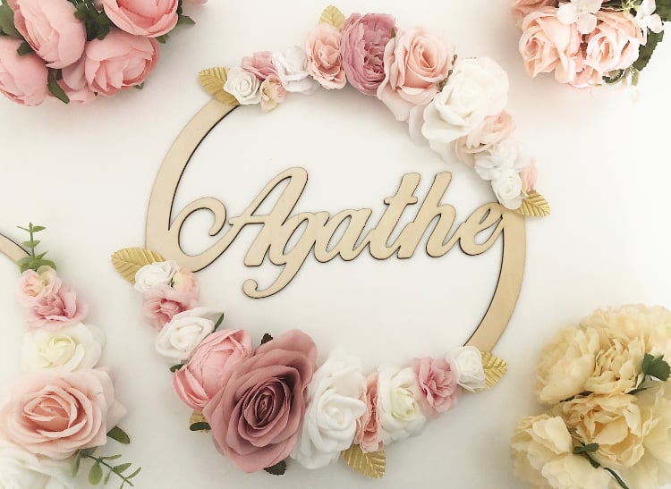 Couronne Prenom Theme Fleurs En Bois Cadeau Naissance 30 Cm
