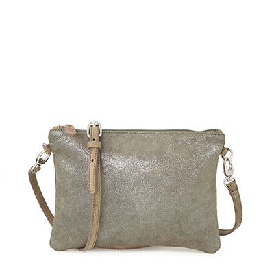 Sac Bandouliere Avec Rabat Facon Cuir Irise Marine Taupe Gris