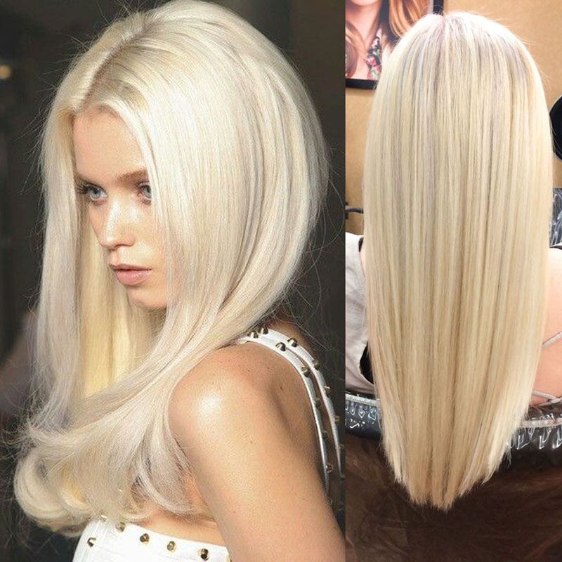 Platinum Blonde Virgin Human Hair Wig 16 26 Available Custom Length And Density Human Hair Wigs Evawigs