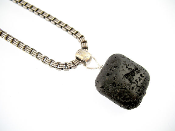 Collier Argent 925 000 Pendentif Boule Pierre De Lave Volcanique Sur Chaine