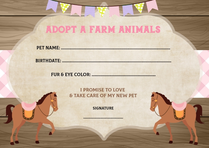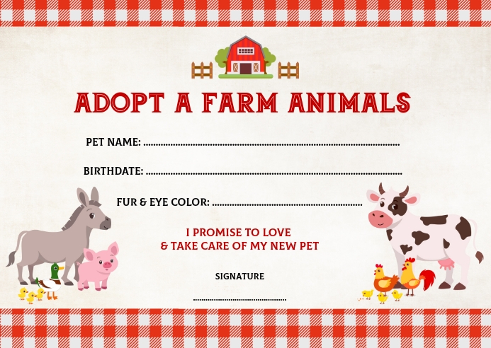 Modele Adopter Une Certificat D Adoption D Animaux De Ferme Postermywall