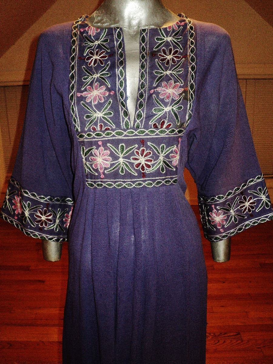 Vintage 1970 S Purple Hindustani Embroidered Caftan Robe Kimono Boho Chic