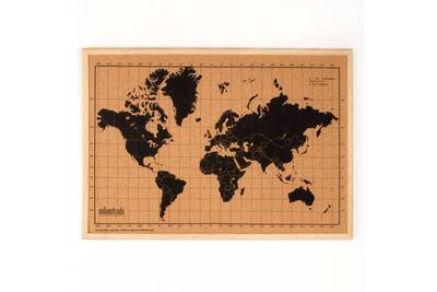 Article De Decoration Milimetrado Carte Du Monde Liege Et Cadre Bois Noir Et Marron 70x50 Cm Darty