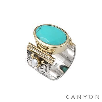 Bague Argent 925 Dorure Or Turquoise Perle Fine 12 3g T54 Canyon Bijoux