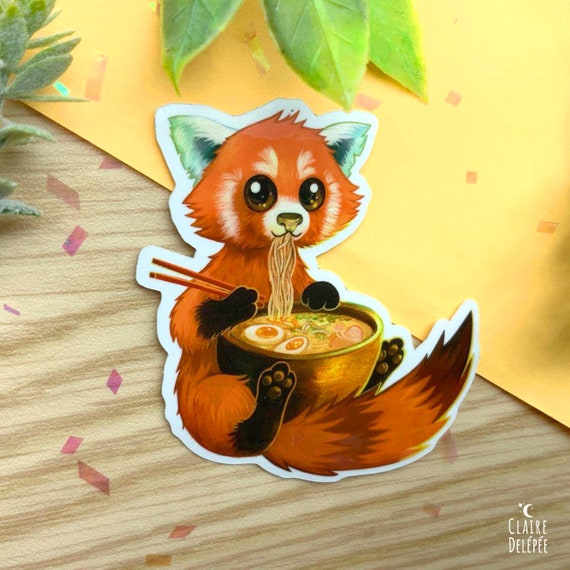 Red Panda Eating Ramens Sticker Cute Red Panda Original Art Etsy