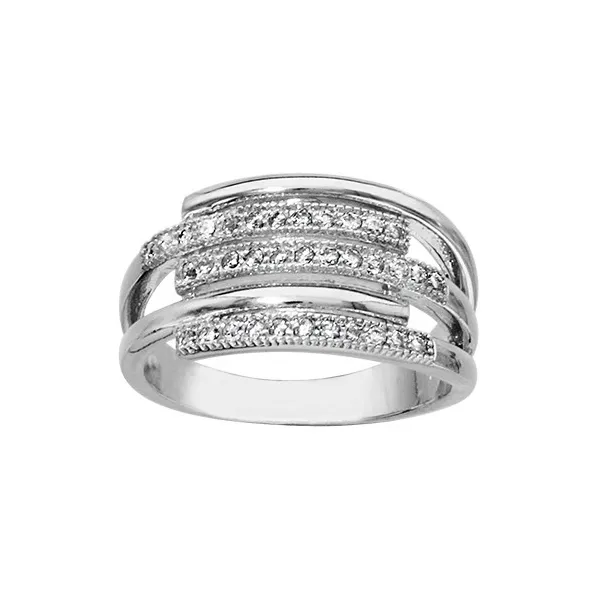 Bague Argent Rhodie Multi Rangs Paves Oxydes Pas Cher En Stock Promo Bijoux Pas Cher