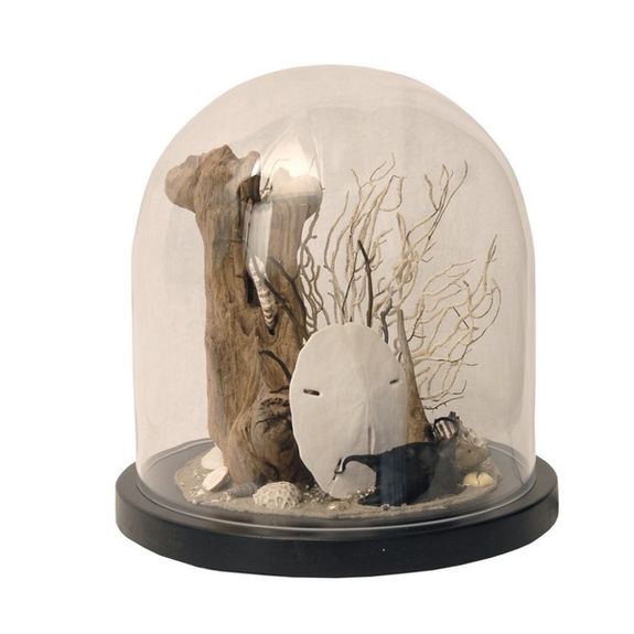 Cabinet Curiosites Marines Sous Cloche En Verre Et Illumine