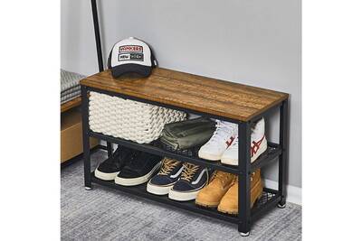 Banc A Chaussures De Style Industriel Etagere A Chaussures Avec 2 Etages En Treillis Structure En Metal A L Entree Au Salon Stable Gain D Espace Rustique Lmr32bx Entree Au Salon Stable 66 X