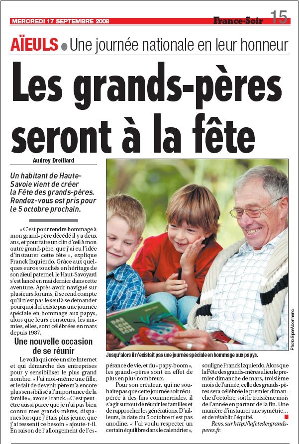 Pour la Fête des GrandsPères, nous vous avons réservé. La Fête nationale des grandsparents est célébrée aux tatsUnis depuis 1978 et au Canada depuis 1995, le premier dimanche de septembre suivant la fête du travail, ellemême fêtée le premier lundi de septembre Au Québec, la fête des grandsparents est soulignée par la FADOQ 1 et l'Association des grandsparents du Québec 2. De nombreuses idées cadeaux.
