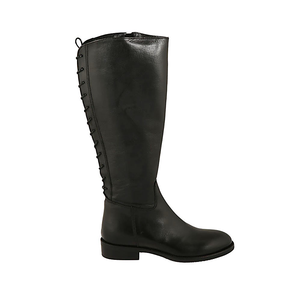 Bottes Pour Femmes Avec Fermeture Eclair Et Lacets Derriere En Cuir Noir Talon 3