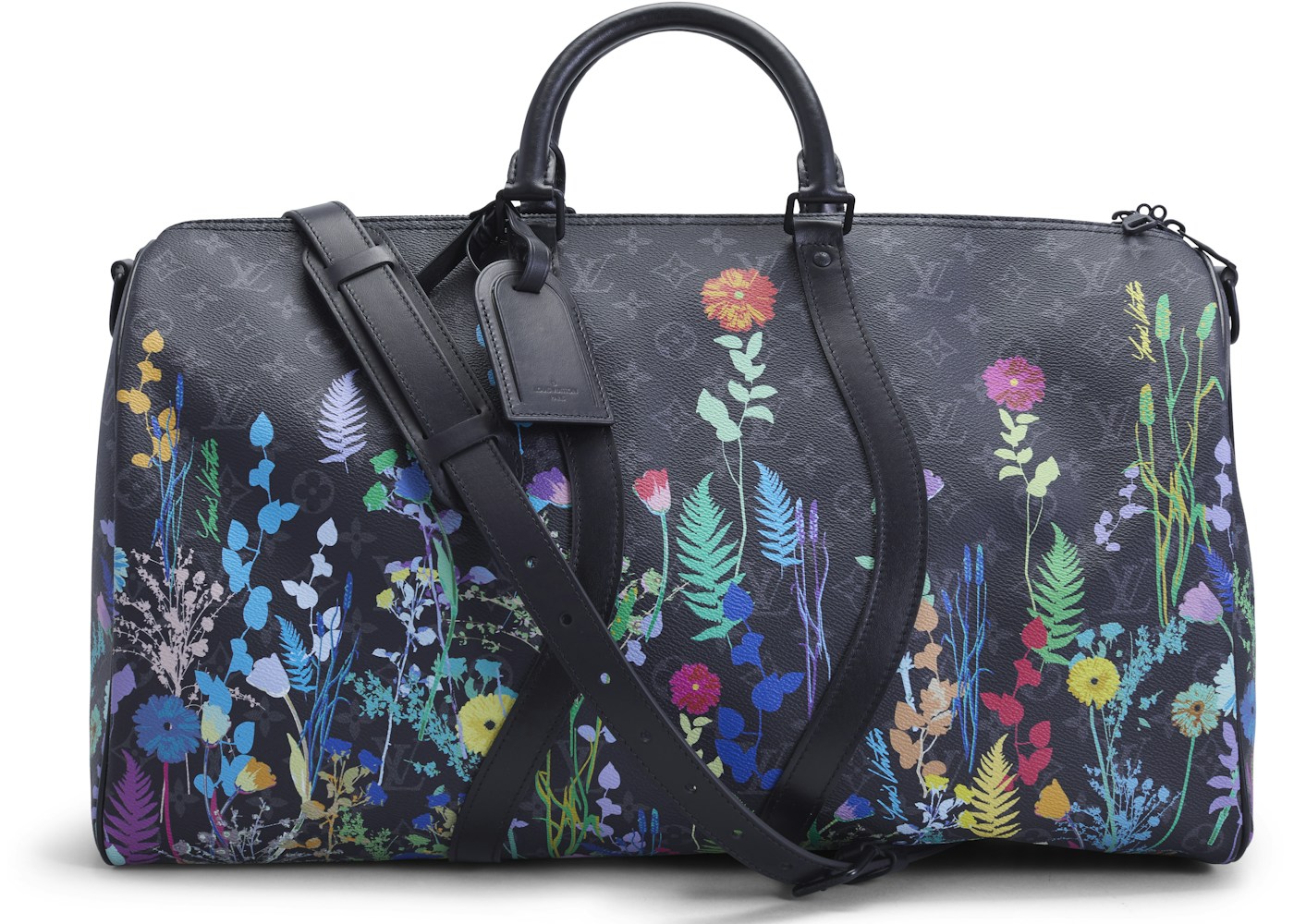 Louis Vuitton Keepall Bandouliere Monogram Eclipse 50 Foliage In Coated Canvas With Matte Black Tone