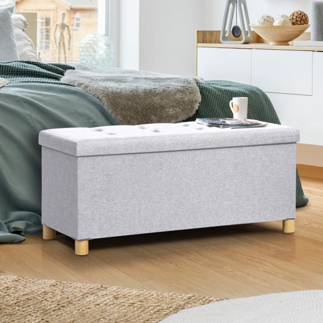 Banc Coffre De Rangement Pouf Pliable Grand Pour 3 Personnes Tissu En Lin Gris 110 X 38 X 38 Cm Achat Vente Pouf Poire Soldes Sur Cdiscount Des Le Janvier Cdiscount