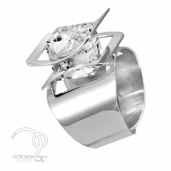 Bague Reglable Originale En Argent Et Swarovski De Ostrowski Design Collection X Play