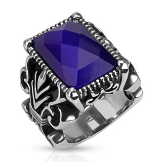 Achat Bague Homme Acier A Fleurs De Lys Sculptees Et Pierre Bleue Pas Cher