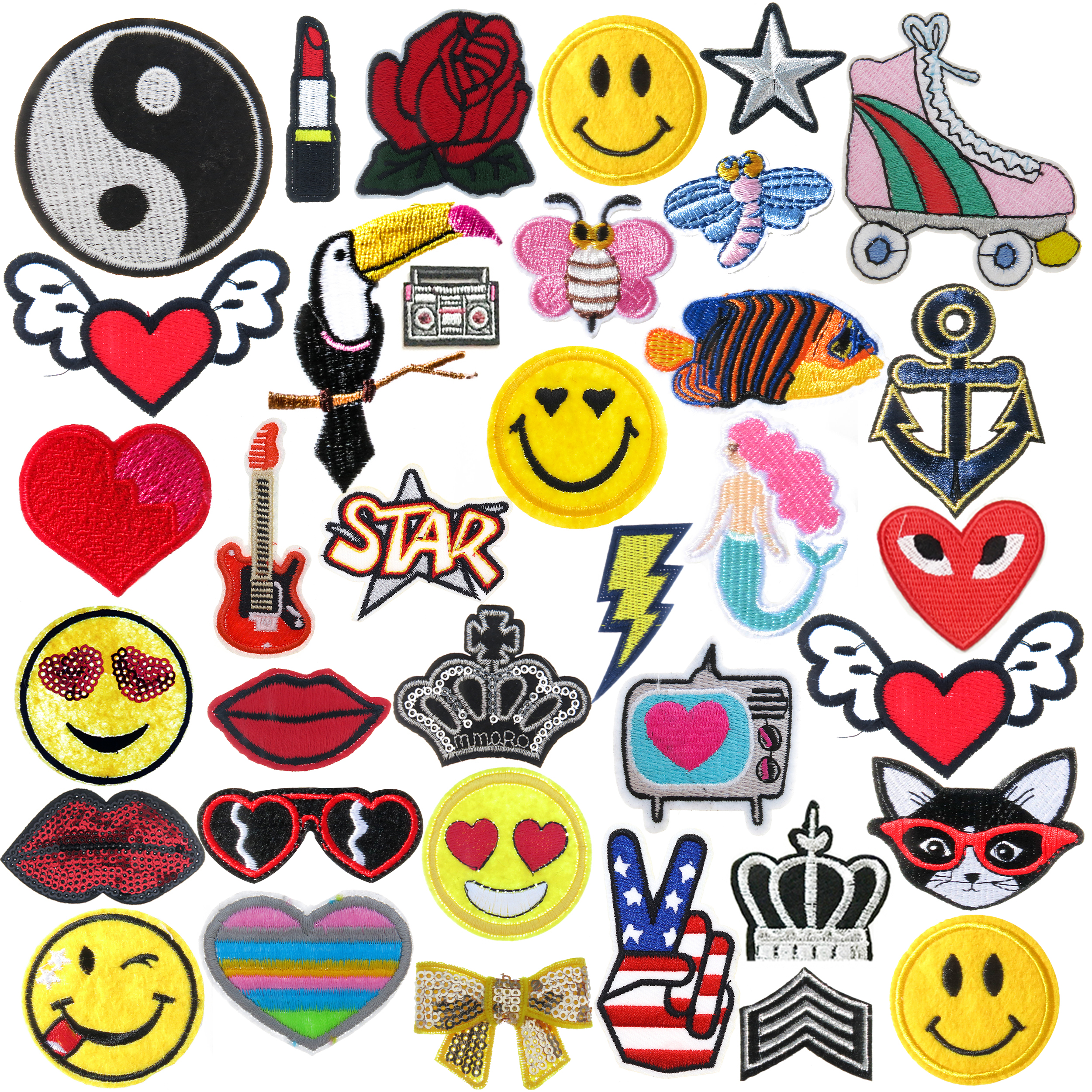 Amazon Com 36 Pcs Iron On Patches Set Assorted Designs Embroidered Applique Sew On Patch Set Great For Repairing Decorating Reinforcing And Mending Jeans Backpacks Denim Clothes Cool Party Favors 1