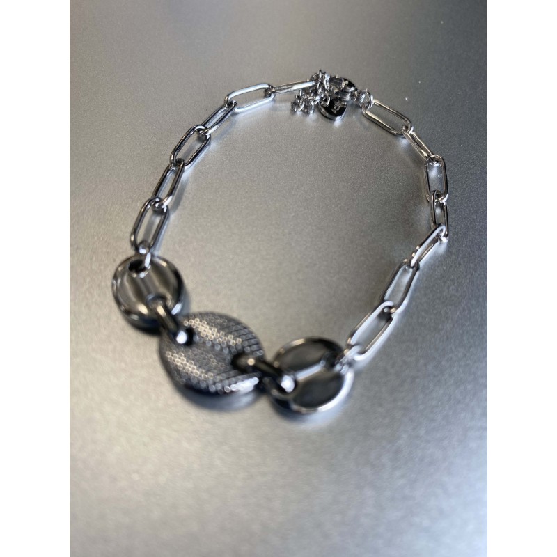 Bracelet Acier Gros Maillons Grains De Cafe Sur Chaine Ovale