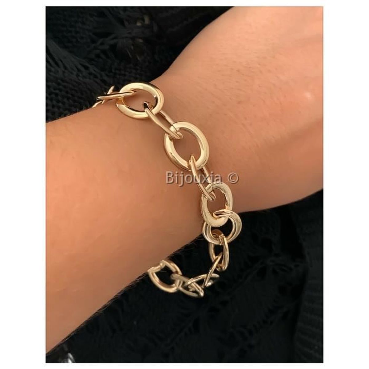 Bracelet Chaine Gros Maillons Plaque Or Femme Tendance