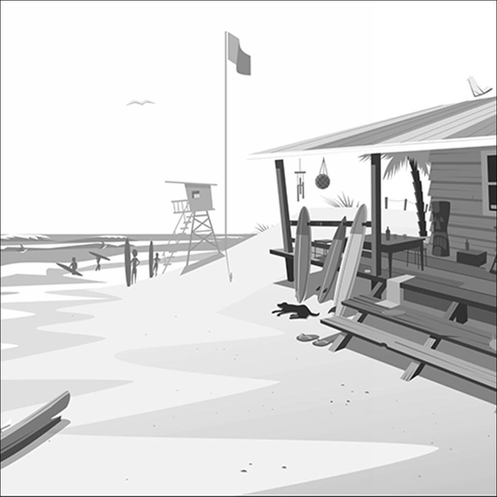 Surf Shack Noir Et Blanc Par Charlie Adam Bungalow Graphics Achat Tableaux Lamines Affiches L Art D Ete L Art Des Tikis Exotiques Bungalow Editions Limitees