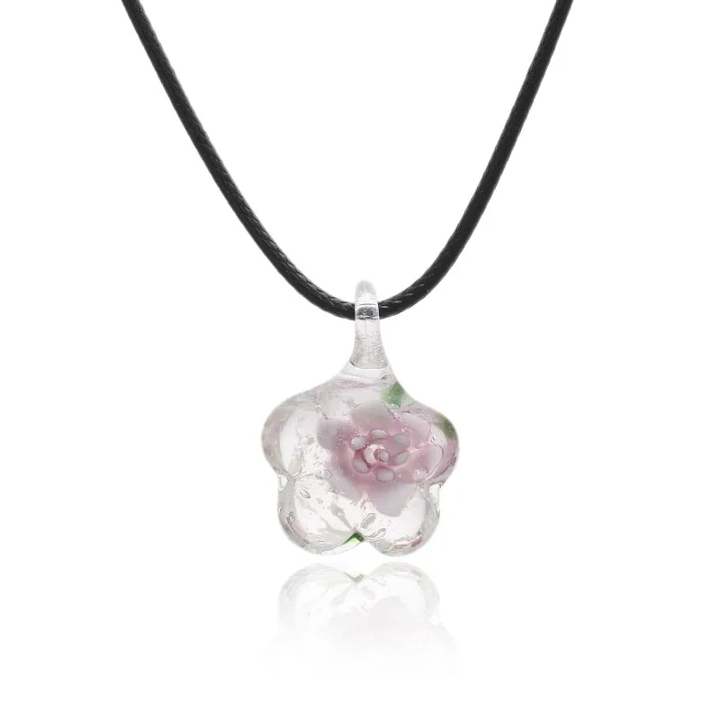 Collier Pendentif En Verre De Murano Avec Des Fleurs A L Interieur Pour Les Femmes Accessoires De Bijoux Aliexpress