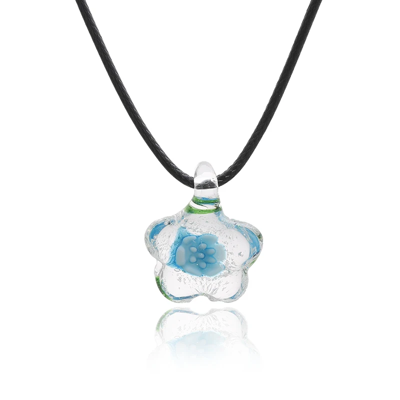 Collier Pendentif En Verre Murano Art Fleur Charme Avec Fleurs Bleu Ciel A L Interieur Du Collier Pour Femmes Filles Bijoux D Ete Aliexpress