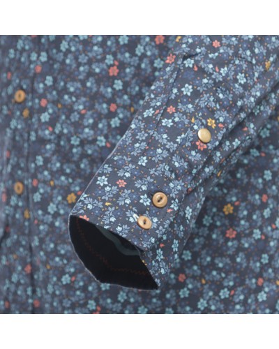 Seidenstickerchemise Confort Printed Capsule Liberty London Fabrics Bleu Marine Micro Dessin