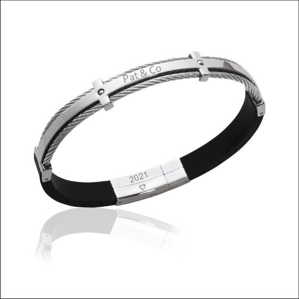 Bracelet Gourmette Homme Acier Caoutchouc Noir Gravure Personnalise Bijouxstore Webid 810