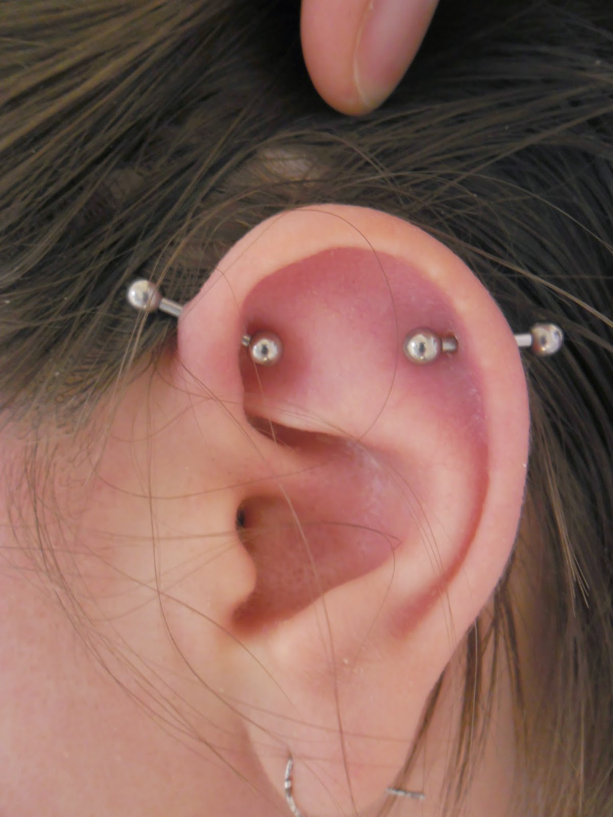 Je me suis fait piercing il y a 4 jour et là douleurs est de plus en plus insupportable au point d’hésiter à retirer le bijou Je dois prendre du paracetamol telle et j’ai mal Mon oreille est Bien rouge et gonflé surtout à l’arrière Une sensation de chaleur Contact impossible même un simple effleurement Par contre pas de pus. Le piercing industriel (ou Scaffold) est constitué d'un piercing hélix et d'un antihélix (situé sur le cartilage interne de la partie supérieure de l'oreille) ;. Piercing d’oreille très en vogue en ce moment l’industriel ou indus Ce piercing est piercé en 1,6mm Il traverse l’hélix en deux endroits Les boules sont reliées par une barre longue visible sur le devant de l’oreille.