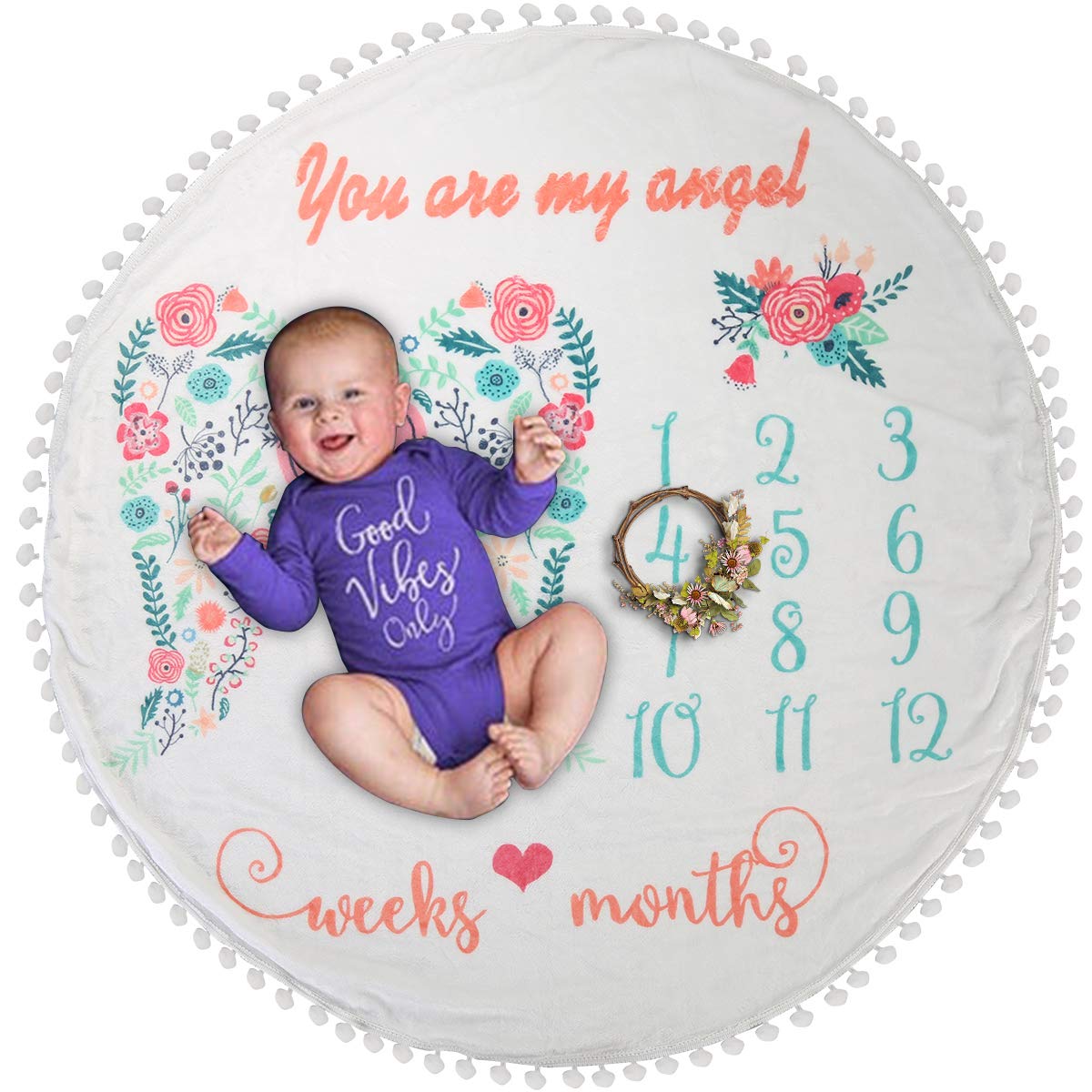 Eurobuy Couverture Mensuelle Pour Bebe Motif Floral Super Douce Pour Photographie De Nouveau Ne Garcon Et Fille Cadeau De Fete Prenatale Couvertures Et Couvertures D Emmaillotage Couvertures