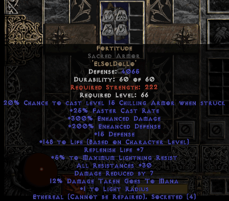 Buy Diablo 2 Fortitude Sacred Armor Eth Bugged 30 Res 1 1 5 Life At D2trophy Com