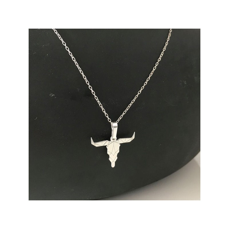 Collier Pendentif Tete De Buffle Origami Argent 925 000 Sur Fine Chaine