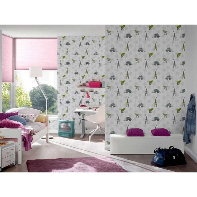 Papier Peint Enfant Imprime Dinosaures Gris Vert 10 Ml X 0 53 M Leroy Merlin