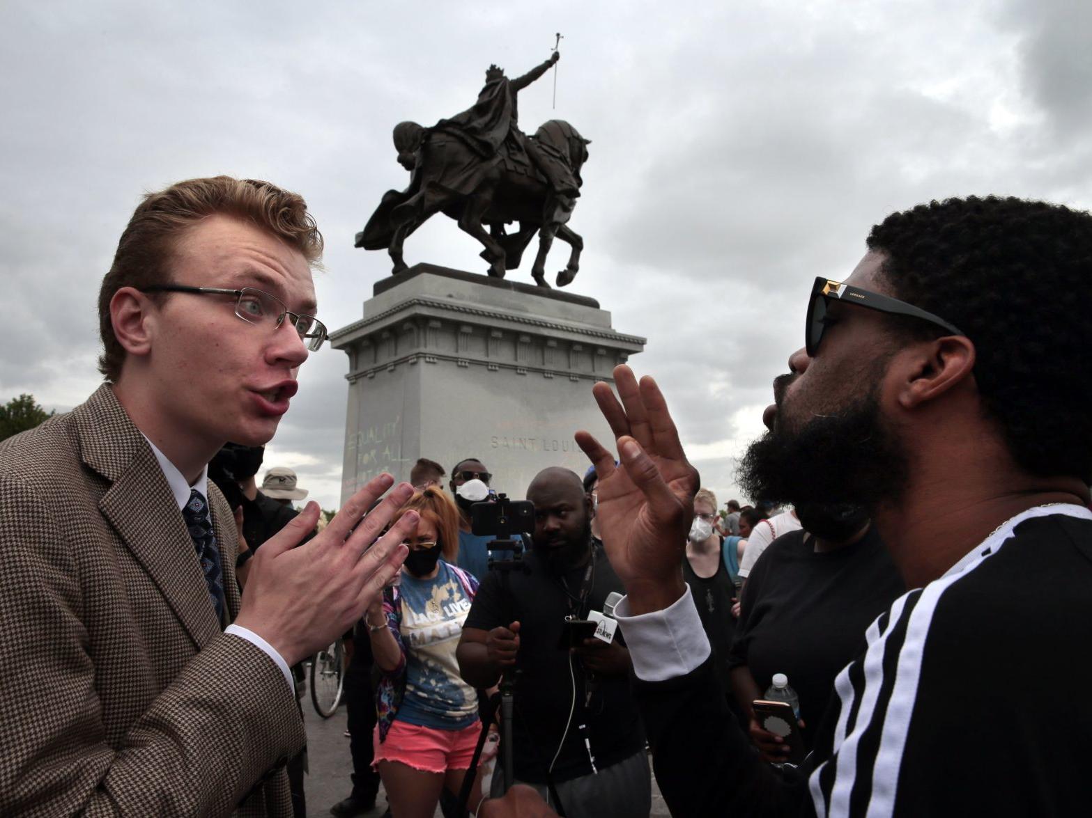 Should He Stay Or Go Protesters Clash Over Statue Of St Louis Namesake Politics Stltoday Com