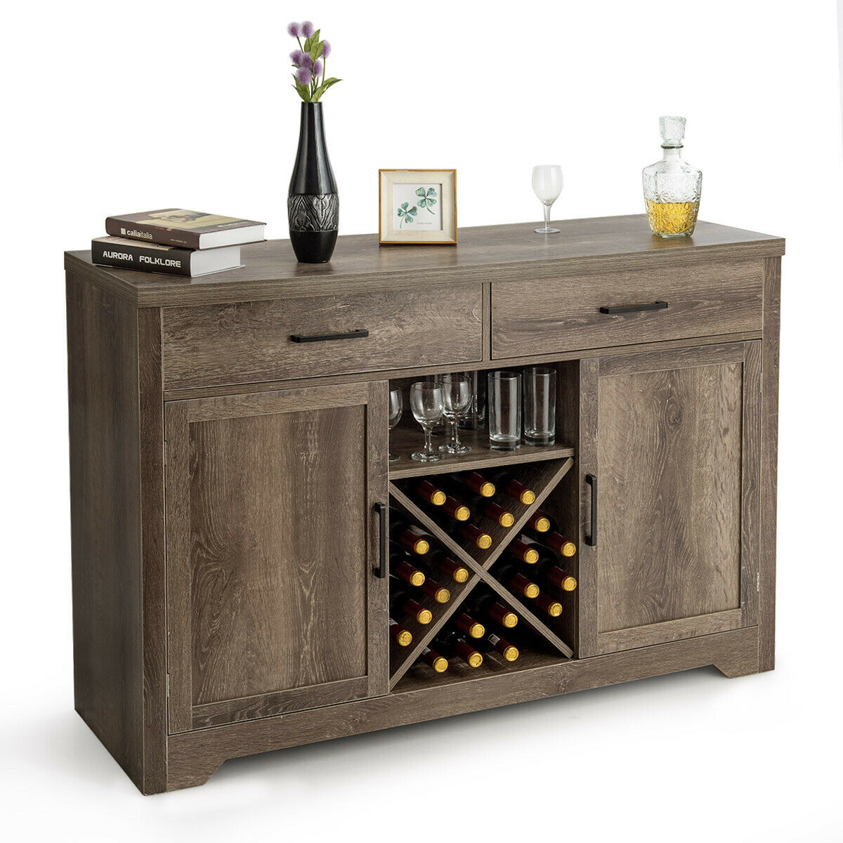 Modhaus Living Industrial Rustic Liquor Storage Wine Rack Wood Buffet Cabinet With Distressed Wood Finish From Walmart Bhg Com Shop Wine Rack Sideboard Rustic Sideboard Wood Buffet
