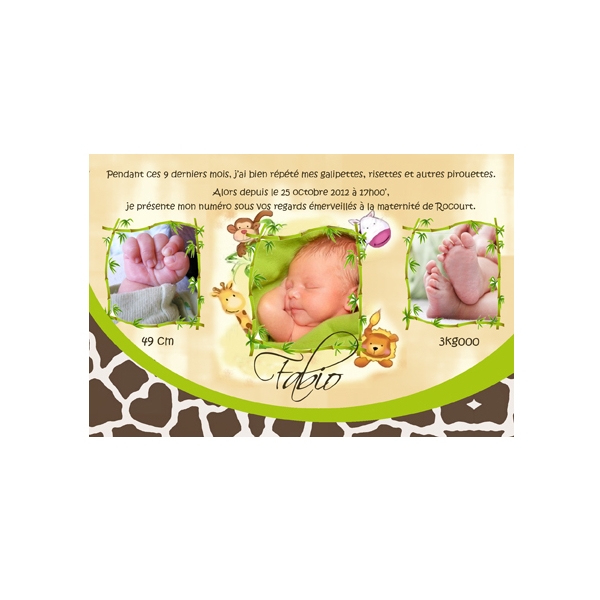 Faire Part Naissance Original Animaux Jungle Photo Fps En Route 460