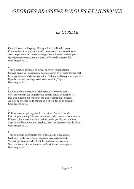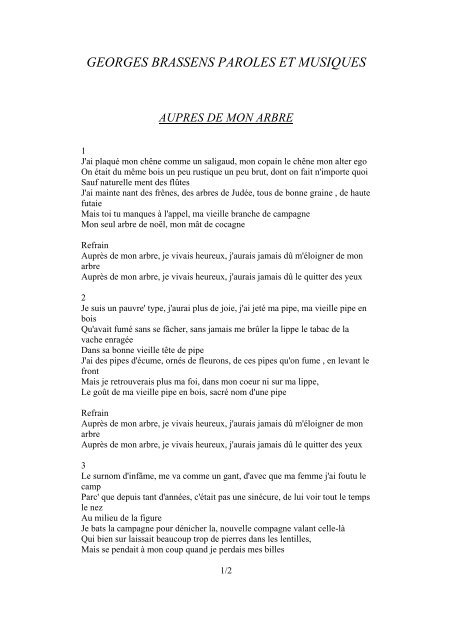 Imprimer Les Paroles Brassens Paroles Et Musiques