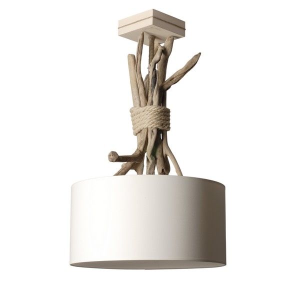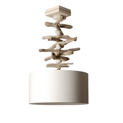 Lampe Suspension Bois Flotte Abat Jour 40cm Blanc
