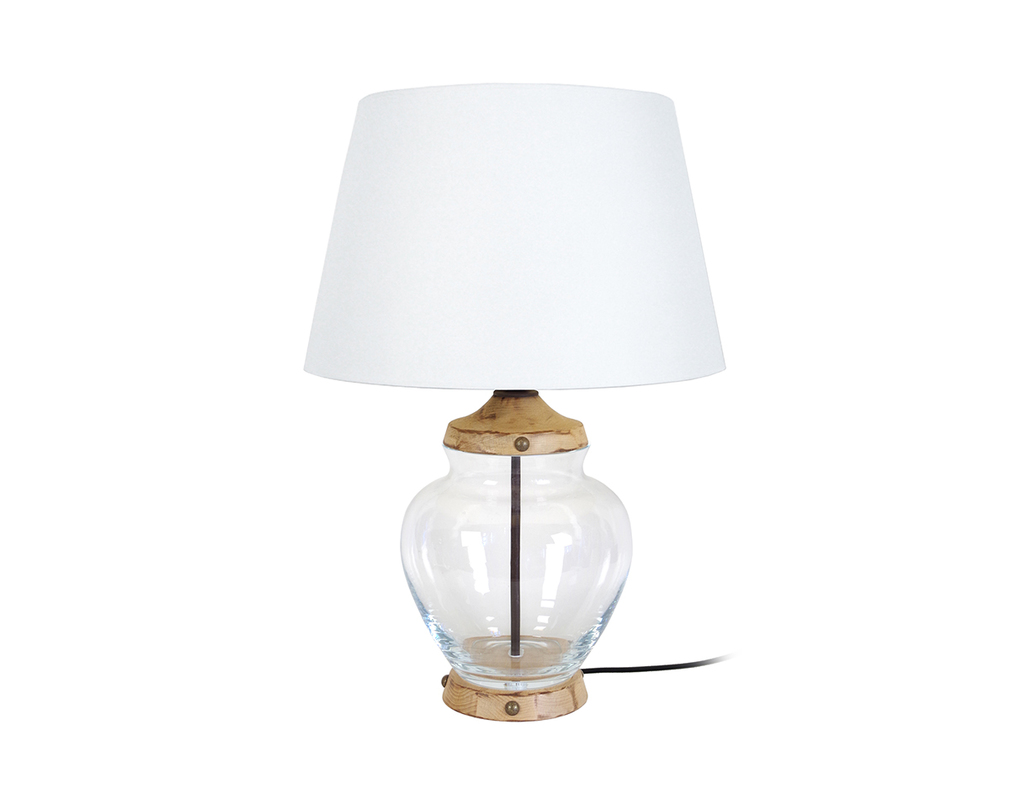 Lampe A Poser Tibby Abat Jour Verre Et Decor Bois Luminaire Fr