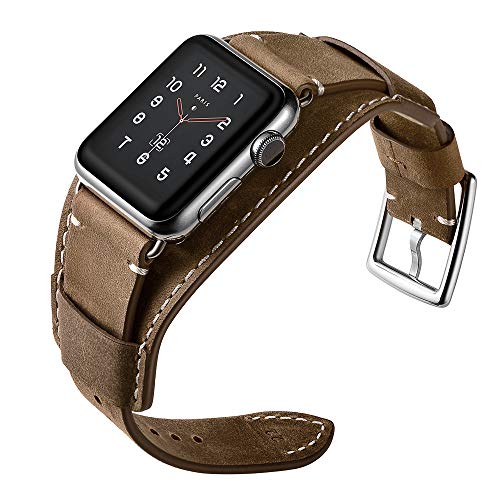 Fullmosa Bracelet Apple Watch 44mm 42mm 40mm 38mm Bracelet Apple Watch Serie 5 4 3 2 1 Wax Bracelet Iwatch Band Cuir Pour Homme Femme Brun Clair