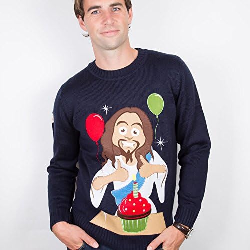 Funky Christmas Jumpers Mens Ugly Christmas Sweater Happy Birthday Jesus Christmas Sweater Small Navy Amazon In Clothing Accessories