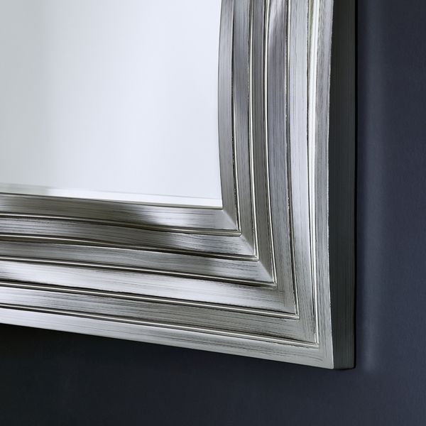 Grand Miroir Mural Bois Cadre Biseaute Gris Chrome Verre 109x79cm Modern Design Ebay