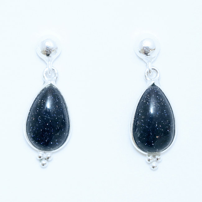 Bijoux Indiens Ethniques Boucles D Oreilles Argent 925 Massif Femme Et Pierre Fine Petite Classique Ovale Facettes Filigranes Cristal Bleu Topaze Fonce Inde 062