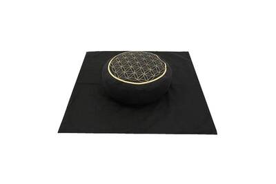 Fleur De Vie Coussin Zafu Meditation Noir Et Or Escale Sensorielle
