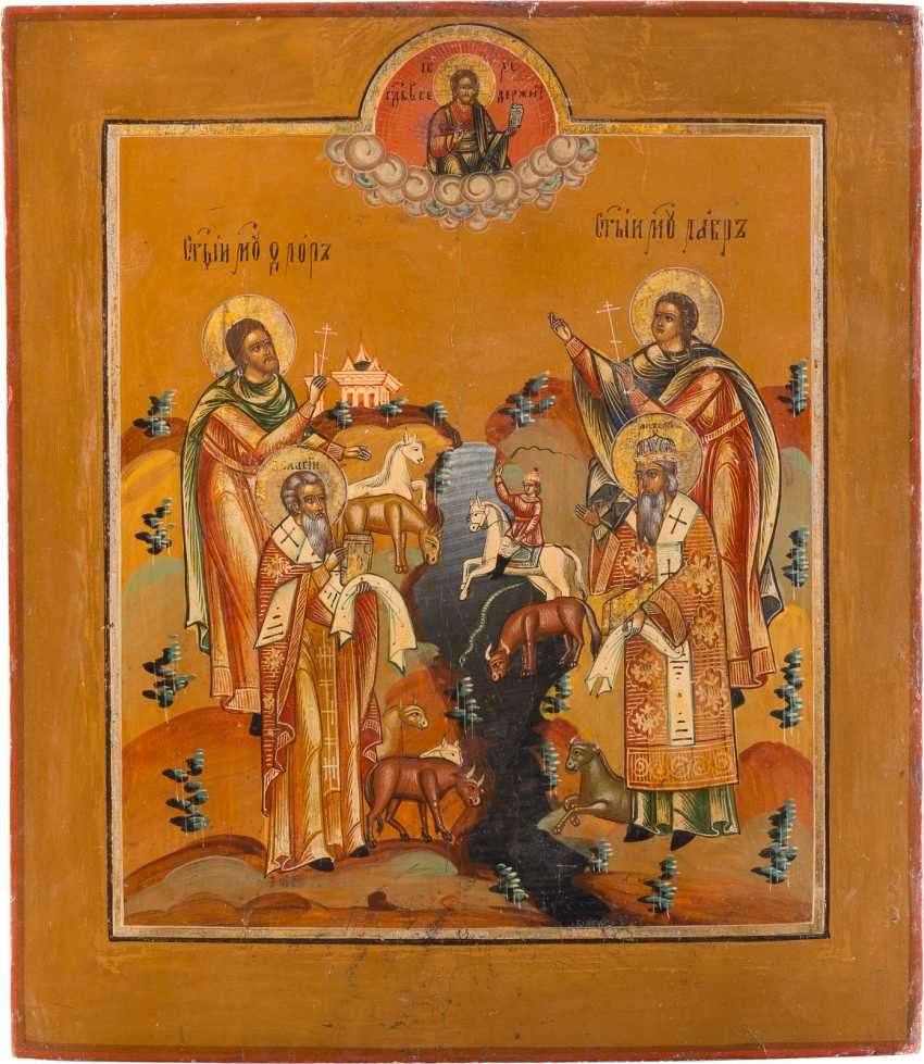 Icone Avec Le Saint Patron Des Animaux Modestus Blaise Florus Et Laurus Acheter En Ligne Aux Encheres Catalogue D Encheres Art Russe Russe Et Grec Icones Partie 1 A 12 04 19 Photo Prix