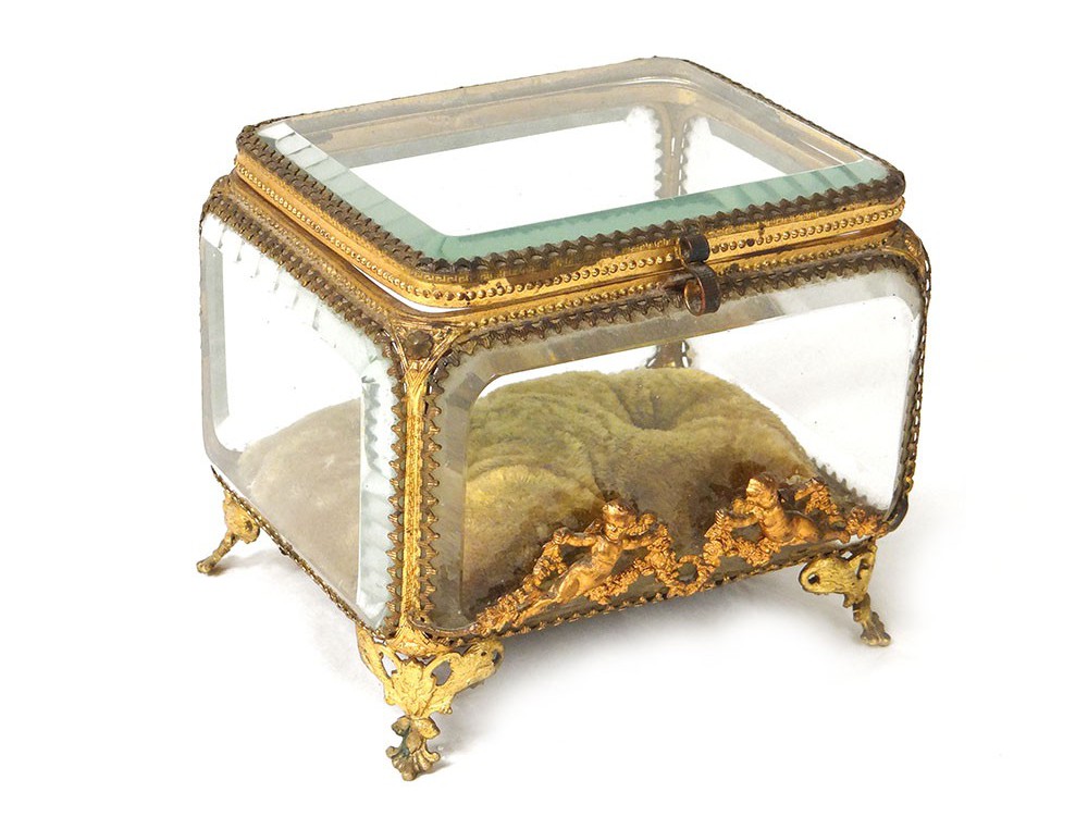Coffret Boite Bijoux Verre Laiton Dore Angelots Napoleon Iii Xixeme Siecle