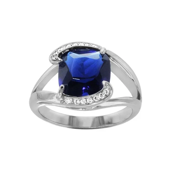 Bague Argent Rhodie Pierre Bleu Fonce Synth Pas Cher En Stock Promo Bijoux Pas Cher