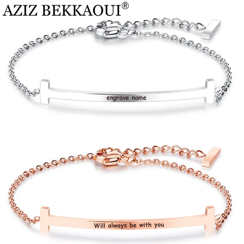 Aziz Bekkaoui Graver Nom Acier Inoxydable Couple Bracelets Pour Femme Hommes Mode Romantique Amitie Lettre A Decorer Bijoux A Bricoler Soi Meme Aliexpress