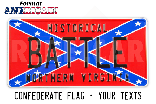 Plaque Us Alu Drapeau Confedere 300x150 Mm Avec Bordure Blanche Et Texte S Personnalise S