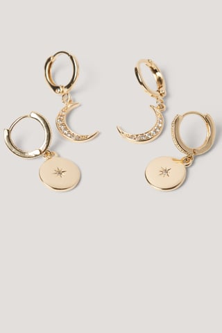 Ensemble De Boucles D Oreilles Coeur Etoile De Lune Or
